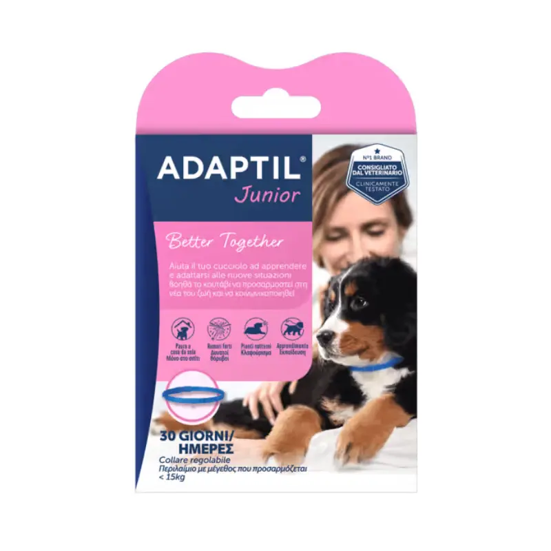 To κολάρο ADAPTIL Junior είναι η αποτελεσματική λύση για την ηρεμία των νέων κουταβιών και τη διευκόλυνση της εκπαίδευσής τους.