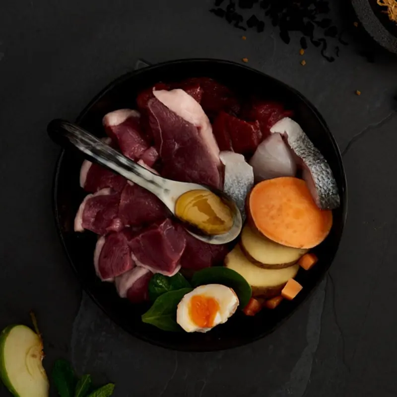 Συστατικά (%) • Φρεσκοπαρασκευασμένη πάπια (45%), Αποξηραμένη πάπια (10%), Γλυκοπατάτα, Πατάτα, Αποξηραμένη Ρέγγα (6%), Φρεσκοπαρασκευασμένο Ελάφι (4%), Αποξηραμένο Κουνέλι (4%), Πρωτεΐνη μπιζελιού, Αποξηραμένο Αυγό (2% ), Σάλτσα κοτόπουλου (1%), Μηδική, Έλαιο Σολομού (1%), Πρωτεΐνες πατάτας, Μέταλλα, Κράνμπερι, Μαννανολιγοσακχαρίτες, Φρουκτοολιγοσακχαρίτες, Μήλο, Καρότο, Σπανάκι, Φύκια, Χαμομήλι, Μέντα, Κατιφές, Γλυκάνισος & Τριγωνόφυλλο.