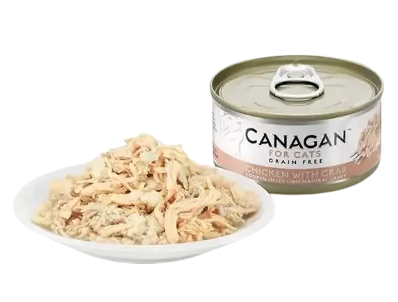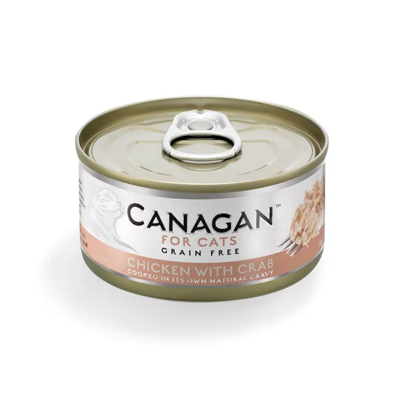 Τα κονσερβάκια της Canagan Cat Can Chicken with Crab είναι ένα πλήρες και ισορροπημένο γεύμα με τρυφερά κομμάτια κοτόπουλο και καβούρι, απλά μαγειρεμένα στο δικό του φυσικό ζωμό