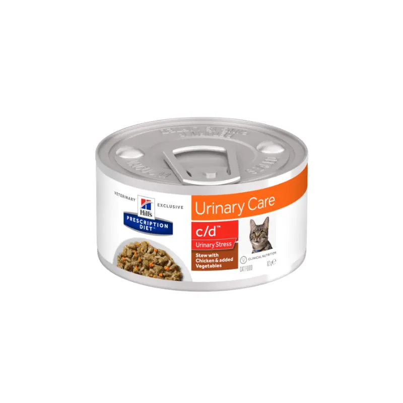 Οι διατροφολόγοι & οι κτηνίατροι της Hill’s ανέπτυξαν τη διαιτητική διατροφή Prescription Diet c/d Multicare Stress με σύνθεση ειδικά σχεδιασμένη για υποστήριξη της υγείας του ουροποιητικού μιας γάτας και ταυτόχρονη διαχείριση του στρες. Μάλιστα η c/d Multicare είναι διατροφή που έχει δοκιμαστεί κλινικά για τη μείωση της επανεμφάνισης των πιο συχνών συμπτωμάτων του ουροποιητικού κατά 89%. Αυτή η υγρή τροφή παρασκευάζεται με κοτόπουλο και λαχανικά και έχει ακαταμάχητη γεύση που η γάτα σας θα λατρέψει.
