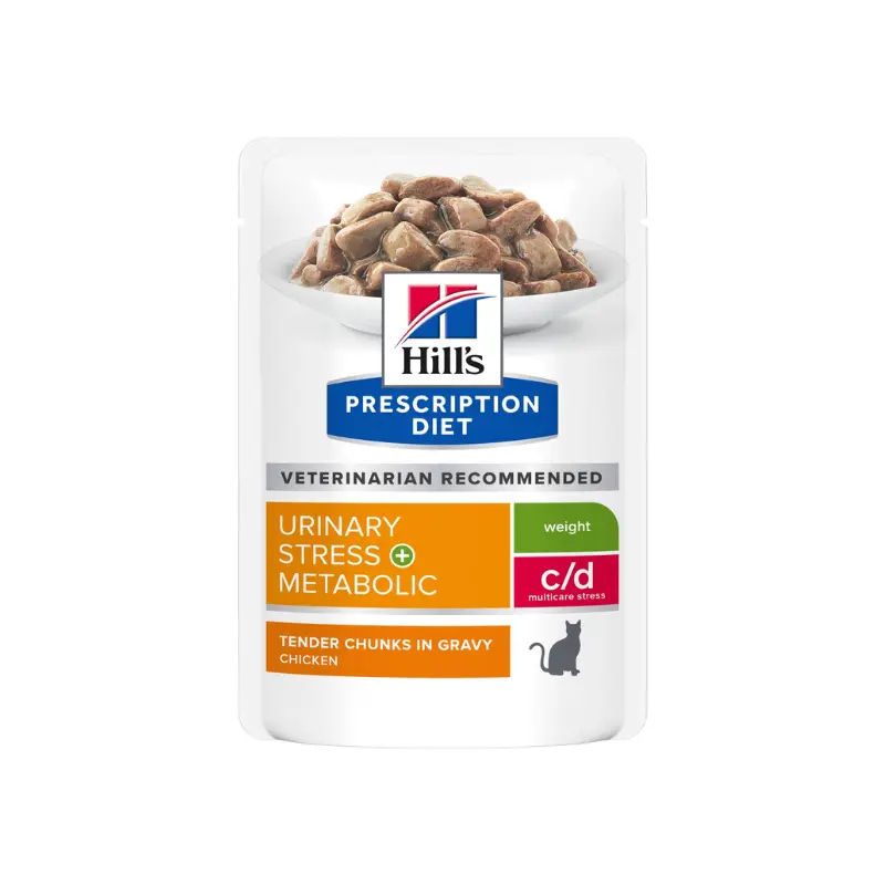 Οι διατροφολόγοι & οι κτηνίατροι της Hill’s ανέπτυξαν τη ξηρή τροφή Prescription Diet c/d Multicare Stress + Metabolic για γάτες ώστε να είναι μια κλινική διατροφή με σύνθεση ειδικά σχεδιασμένη για βοήθεια στη διαχείριση της υγείας του ουροποιητικού και του βάρους μιας γάτας. Μάλιστα, η διατροφή c/d Multicare Stress + Metabolic για γάτες έχει διαπιστωθεί ότι βοηθά στη μείωση του ποσοστού επανεμφάνισης των πιο κοινών συμπτωμάτων από το ουροποιητικό κατά 89%, στη μείωση του σωματικού βάρους κατά 11% σε 60 ημέρες, και περιέχει συστατικά για βοήθεια στη διαχείριση του στρες.