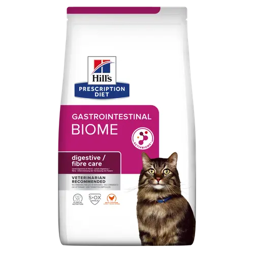 Οι διατροφολόγοι και οι κτηνίατροι της Hill’s διαμόρφωσαν τη διατροφική δίαιτα Gastrointestinal Biome με ActivBiome +, μια καινοτόμο τεχνολογία συστατικών, για την προώθηση των φυσιολογικών κενώσεων σε μόλις 24 ώρες και τη μείωση του κινδύνου επανεμφάνισης.