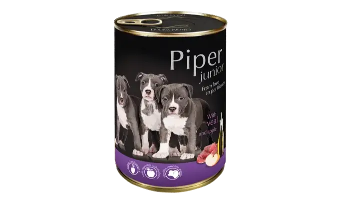 Η σειρά PIPER παρέχει μια υγρή τροφή που παρασκευάζεται για κουτάβια για τις ειδικές διατροφικές τους ανάγκες. Η υγρή τροφή PIPER JUNIOR εγγυάται τη σωστή και ισορροπημένη ανάπτυξη των νεαρών σκύλων. Περιλαμβάνει πρωτεΐνη και όλα τα απαραίτητα αμινοξέα που είναι κρίσιμα κατά την περίοδο ανάπτυξης ενός νεαρού οργανισμού. Τα n-3 και n-6 λιπαρά οξέα ρυθμίζουν τις μεταβολικές λειτουργίες, καθώς και τις φλεγμονώδεις και ανοσολογικές διεργασίες. Το φαγητό διατίθεται σε τρεις ποικιλίες γεύσεων.