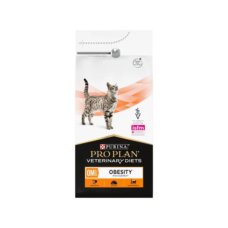 Η Pro Plan® Veterinary Diets Dry Cat Food OM Obesity Management είναι μια πλήρης διαιτητική τροφή για ενήλικες και ηλικιωμένες γάτες σχεδιασμένη για απώλεια βάρους και διατήρηση του βέλτιστου βάρους σε ενήλικες γάτες.