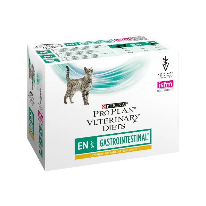 Η Purina® Pro Plan Veterinary Diets EN Gastrointestinal είναι μια πλήρης διαιτητική υγρή τροφή για γάτες όλων των σταδίων της ζωής για μείωση των οξέων διαταραχών της εντερικής απορρόφησης και προώθηση της διατροφικής αποκατάστασης και ανάρρωσης. Η κλινική δίαιτα περιέχει εξαιρετικά εύπεπτα συστατικά και Πρεβιοτικά για να βοηθά στη διαχείριση των γαστρεντερικών παθήσεων και να υποστηρίζει τη συνολική υγεία του εντέρου. Είναι κατάλληλη για γάτες όλων των ηλικιών, καθώς και για γατάκια.