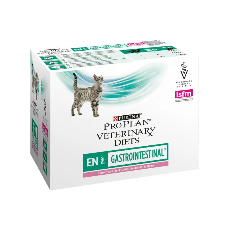 Η ​Purina® Pro Plan Veterinary Diets EN Gastrointestinal είναι μια πλήρης διαιτητική υγρή τροφή για γάτες όλων των σταδίων της ζωής για μείωση των οξέων διαταραχών της εντερικής απορρόφησης και προώθηση της διατροφικής αποκατάστασης και ανάρρωσης. Η κλινική δίαιτα περιέχει εξαιρετικά εύπεπτα συστατικά και Πρεβιοτικά για να βοηθά στη διαχείριση των γαστρεντερικών παθήσεων και να υποστηρίζει τη συνολική υγεία του εντέρου. Είναι κατάλληλη για γάτες όλων των ηλικιών, καθώς και για γατάκια.